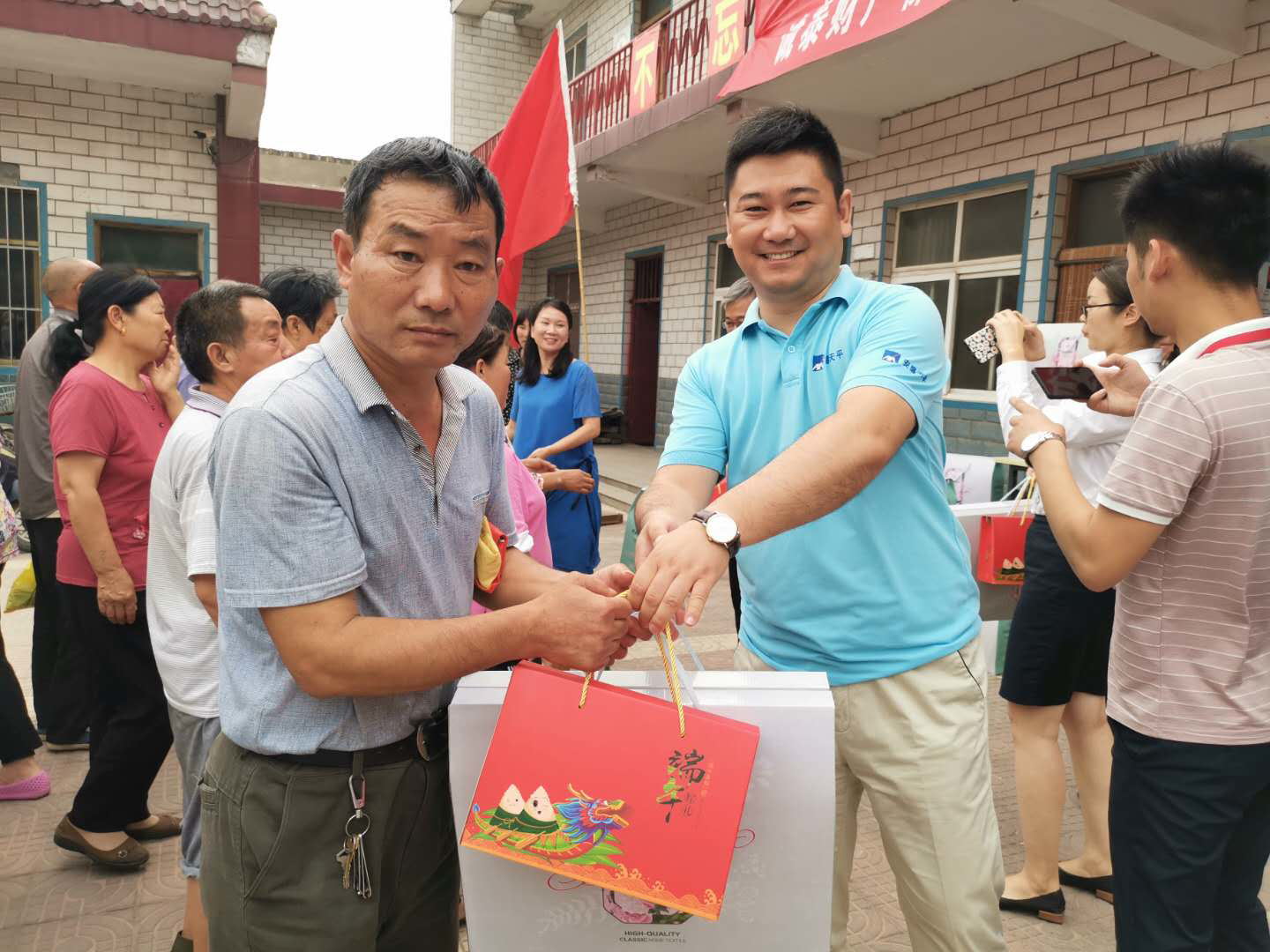 临近端午,为积极响应国家扶贫工作行动,体现“保险扶贫”的政策号召,6月5日,安盛天平焦作中心支公司一行7人来至中站区北朱村,在村委扶贫干部的带领下为该村贫困家庭送去节日的慰问以及夏凉被、粽子等慰问品,受助贫困家庭纷纷表示感谢。