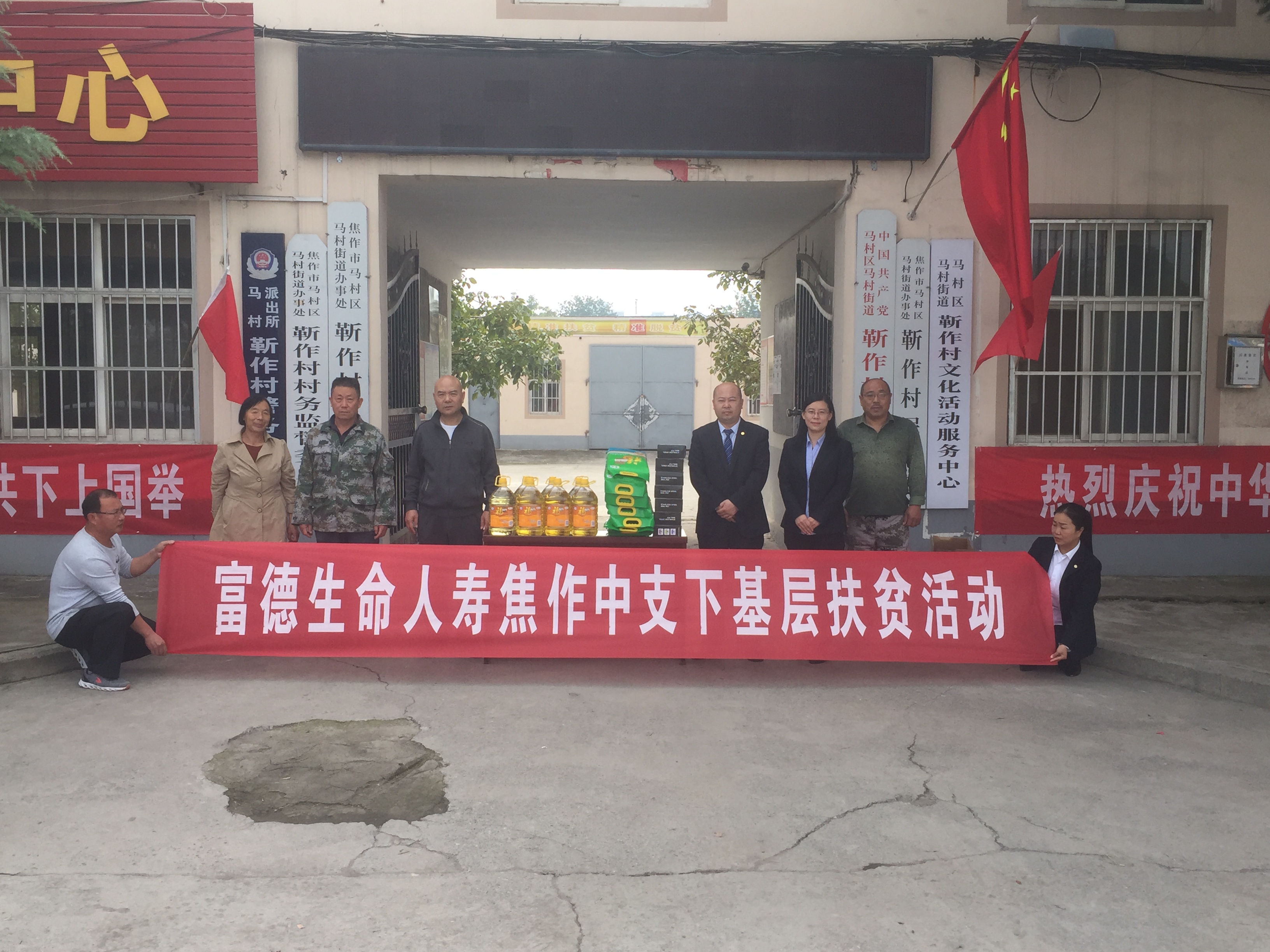 爱心汇聚力量,真情共筑希望。为贯彻落实党的十九大精神,扎实推进精准扶贫工作,富德生命人寿焦作中支于2019年10月13日上午来到马村区靳作村开展下基层扶贫慰问活动,本次共慰问7家贫困户,走访期间,我们通过询问家庭情况,切实了解群众所需,并耐心聆听他们的诉说,鼓励他们奋发图强,自强不息,争取早日脱贫致富,贫困户也对公司的慰问表示感谢。