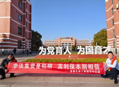为严格落实监管部门防范化解金融风险工作部署,切实履行金融机构主体责任,近日,富德生命人寿焦作中心支公司走进河南理工大学,在学生活动密集的中心广场开展“非法集资是陷阱 高利保本别相信”主题宣传活动,为高校学子送上岁末年初的金融安全“防护盾”。