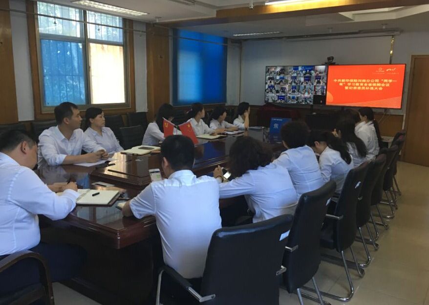 为庆祝中国共产党成立95周年,深入开展“两学一做”专题教育活动,进一步增强党组织的凝聚力和战斗力。6月29日,新华保险焦作中支全体党员、班子成员参加河南分公司组织召开的“两学一做”学习教育视频会议。