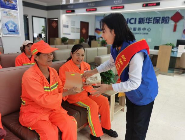 活动当日,新华保险焦作中支的志愿者们提前做好准备,热情邀请附近仍在忙碌的环卫工人走进公司客服大厅休息。环卫工人们暂时放下手中的扫帚,卸下一身疲惫,与志愿者们围坐在一起亲切交流。志愿者们主动关切地询问他们的日常工作强度、生活状况,耐心倾听他们在工作中遇到的酸甜苦辣,对他们日复一日用汗水换得城市整洁美丽的付出,表达了由衷的感谢。随后,志愿者们为每一位环卫工人送上了精心准备的中秋月饼。